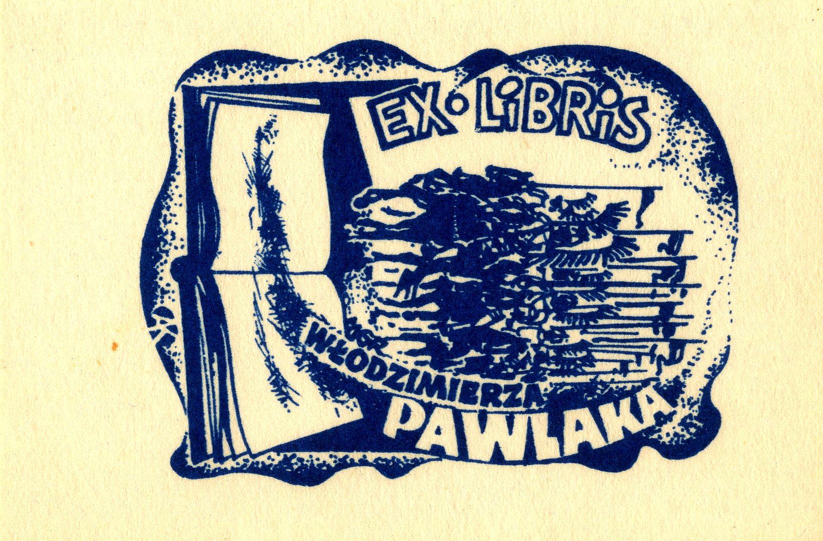 Ex·Libris Włodzimierza Pawlaka / Andrzej Kamiński. - 1 grafika : offset, ekslibris czarny ; 63x45 mm.